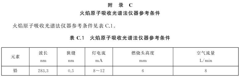 注:可根據(jù)儀器的靈敏度及樣品中鉛的實際含量確定標準系列溶液中鉛的質(zhì)量濃度。
