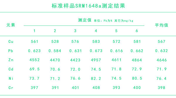 標(biāo)準(zhǔn)樣品SRM1648a測定結(jié)果