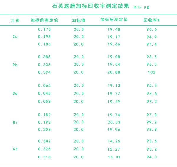 石英濾膜加標(biāo)回收率測定結(jié)果