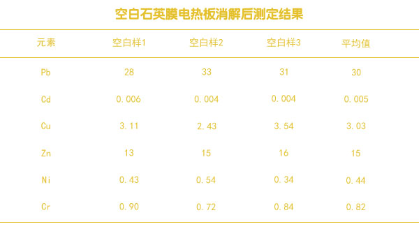 空白石英膜實驗電熱板消解后測定結(jié)果表