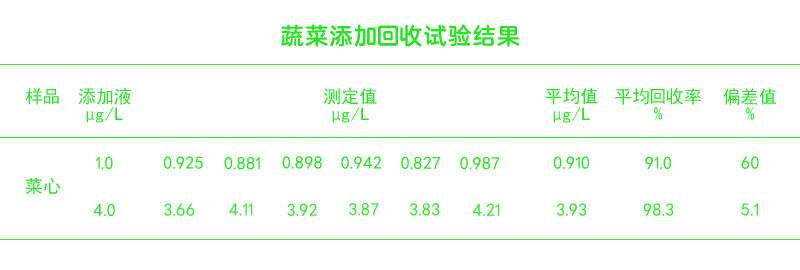 蔬菜添加回收試驗結果